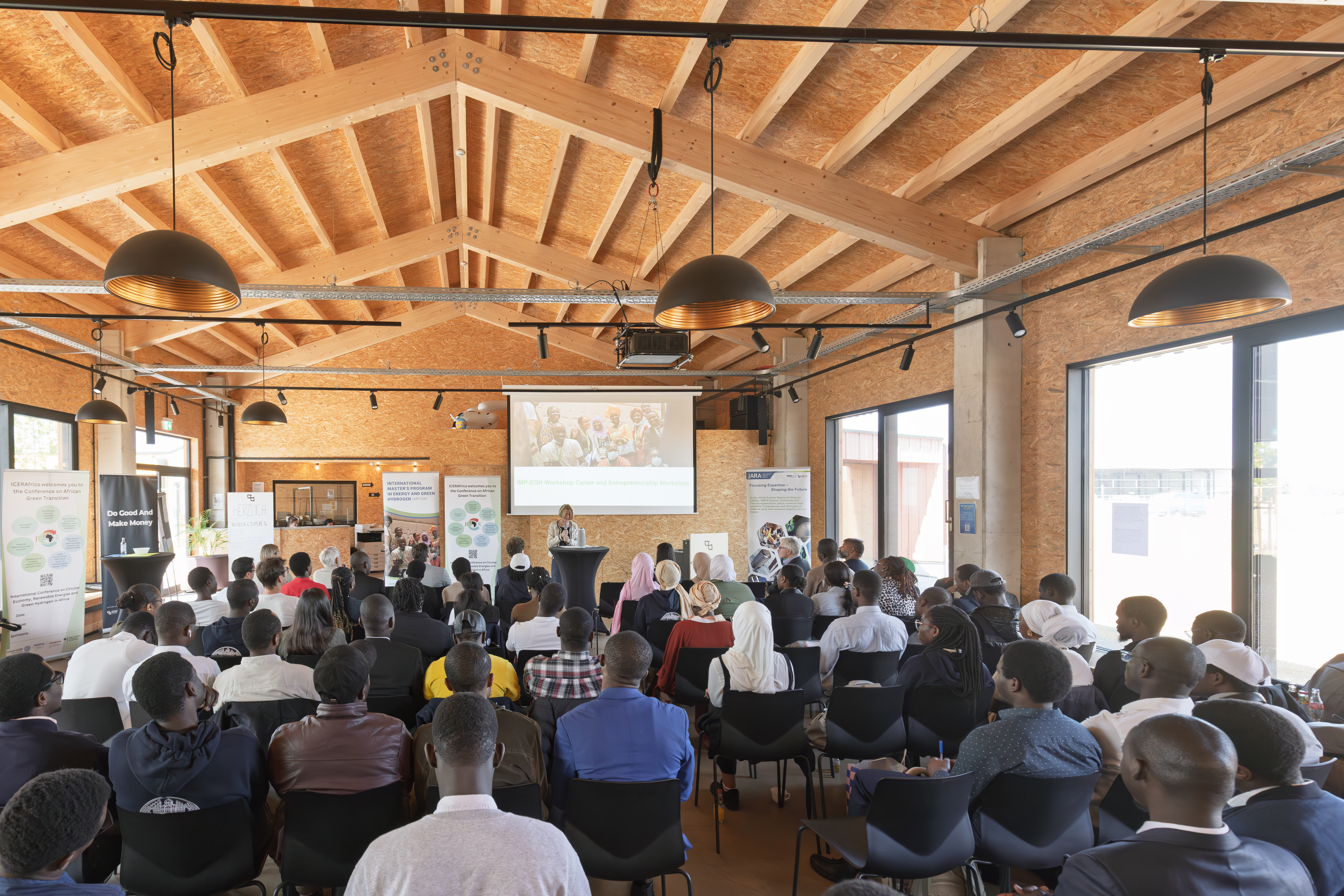 From 12 to 13 June, 2025, WAGEDO took part in the Career and Entrepreneurship Workshops for IMP-EGH students. The event was held at Forschungszentrum Jülich and the Startup Village NRW at Brainenergy Park in Germany, and served as a dynamic platform to connect students, academia, and industry stakeholders. The workshops brought together 67 talented master’s students, alongside representatives from RWTH Aachen University, Rostock University, and the WASCAL Management. Through interactive sessions, participants explored opportunities in career development, entrepreneurship, and innovation in the hydrogen and energy sectors. WAGEDO, through its initiatives, actively contributed by sharing its own experiences in entrepreneurship with the students, offering insights into practical challenges and opportunities in the clean energy space. This participation highlighted WAGEDO’s